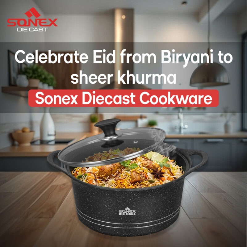 Eid gatherings frequently mean making more than one dish straight away. Whether you’re web hosting a massive circle of relatives dinner or a comfy get together with close friends, dependable cookware makes all the difference. Sonex Die Cast Cookware is designed to distribute warmth lightly, making sure that your meals cook perfectly on every occasion. No greater burnt rice at the bottom of the pot or erratically cooked curries, in reality consistent, scrumptious effects.